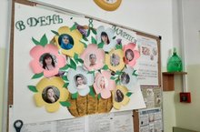 В честь самого весеннего праздника педагоги вместе с ребятами оформили яркую стенгазету. Настоящий цветник раскинулся на информационном стенде и радовал всех гостей дошкольного отделения. Дети очень старались, чтобы удивить и поздравить мам с 8 марта!