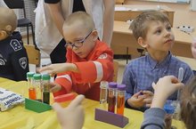 17 января - Международный день детских изобретений. Вот и мы решили наших воспитанников к науке приобщить, и в этот день учебный класс превратить в настоящую лабораторию! Ребята стали учёными и проводили опыты с водой.