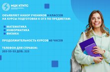 МЦК-КТИТС объявляет набор учеников 9 классов на курсы подготовки к ОГЭ по предметам: Математика, Информатика, Физика