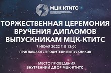7 июля в ГАПОУ «МЦК-КТИТС» пройдет торжественная церемония вручения дипломов выпускникам юбилейного 2022 года.