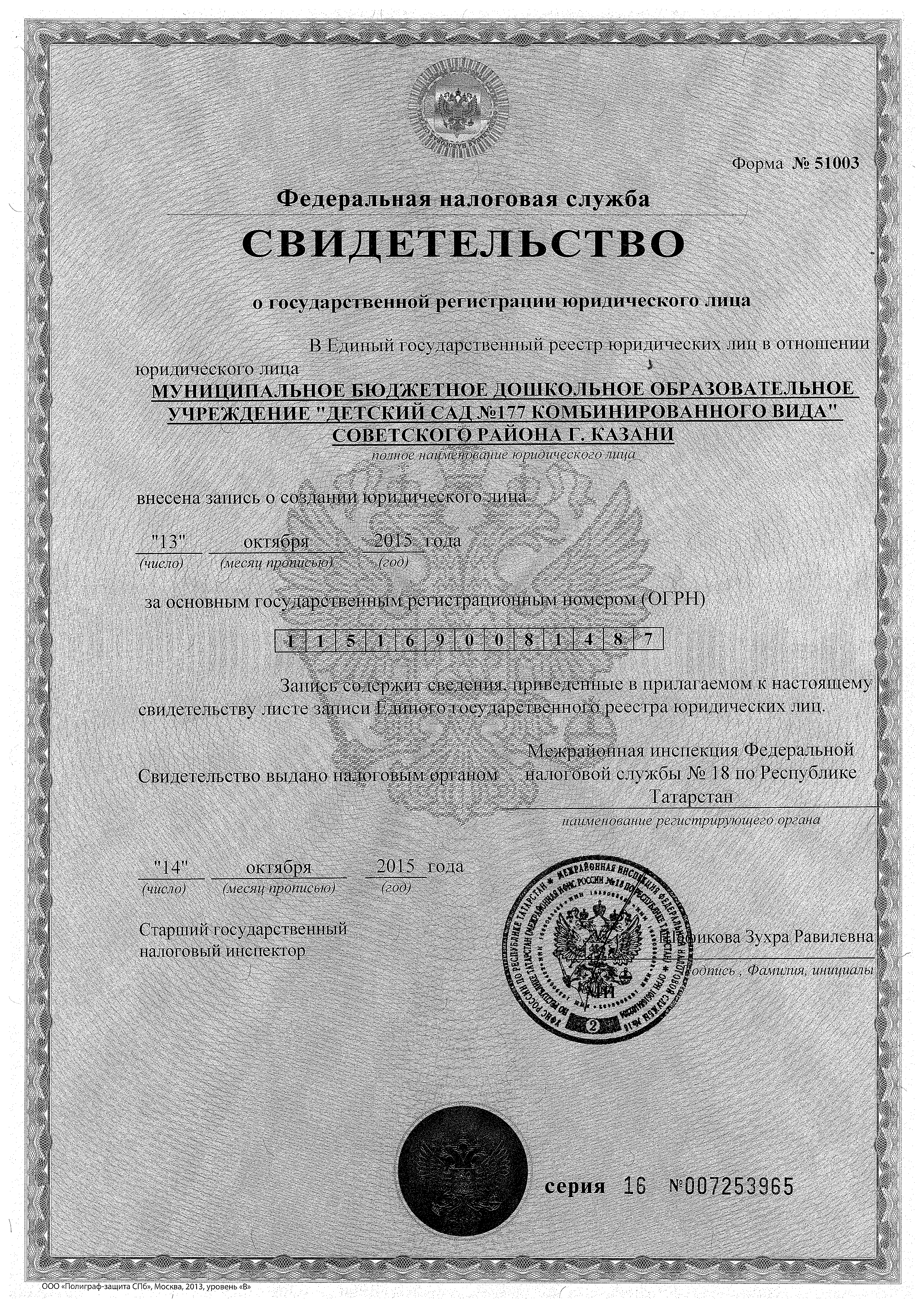 Муниципальное бюджетное дошкольное образовательное учреждение «Детский сад №177 комбинированного вида» Советского района г.Казани