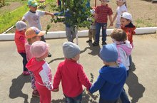 В июле 2017 года в нашем детском саду праздновался День берёзы. Детям на интерактивной доске была покозана информация и история про берёзу. После сделали лепную аппликацию. На прогулке водили хоровод вокруг красавицы (её сделали из веток берёзы). Также вспомнили про её целебные свойства. Примерили венки из веточек, и попрощались с ней. Но детям так понравилось, они решили оставить берёзу на площадке, посадив её в песок...