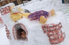 Конечно же, не обойтись без помощи родителей воспитанников в создании снежных построек. Многие родители откликнулись на просьбу педагогов принять участие в оформлении зимних участков. Педагоги вместе с детьми и их родителями с удовольствием превращали заснеженные участки в волшебную страну, где можно встретить сказочных героев, Чудо-печку, а также покататься на горке, побегать по лабиринту, поскользить по ледяным дорожкам, метать в цель, забрасывать цветные шары в ледяной колодец, залезать на ледяные скульптуры и многое другое.