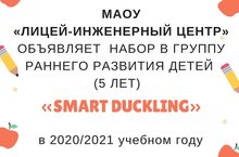 МАОУ «Лицей-инженерный центр» объявляет набор детей в группу раннего развития (5 лет) «SMART DUCKLING» в 2020-2021 учебном году.