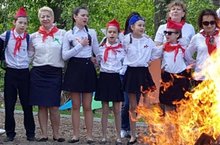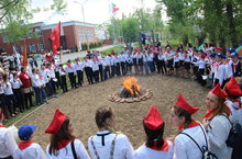Бәйрәмгә галстуклар, пилоткалар тектек. Чарада учак янында җырлап үскән, галстук һәм пилотканың, пионерның кем икәнен белгән кешеләр катнашты. Әмма бер шарт белән: керү билеты берәр атрибутик әйбер, пионер вакытта төшкән фотосурәт булырга тиеш. Әти-әниләр, әләмнәр күтәреп, шигарьләр әйтеп, бәйрәмгә килделәр. Аларга төрле төстәге тасмалар тагылды. Анда отряд номерлары язылган иде.