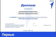 Поздравляем нашу выпускницу, Кристину Водоватову, с 1 место в Республиканском этапе Всероссийского фестиваля «Российская школьная весна»!