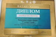 ДИПЛОМ III степени Молодежного фестиваля-конкурса народного творчества ВАТАН-Казань 30.10.2021