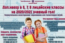 Дополнительный набор в 6, 7, 8 лицейские классы гимназии. 22.06.2020