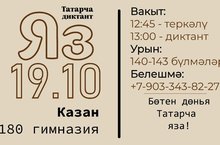 19 нчы октябрь(шимбә) көнне 180 нче гимназия (адресы: Җиңү Проспекты,212 В) 140-143 нче бүлмәләрдә татарча диктант язу оештырыла.