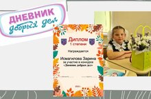 Среди учащихся 1 классов, прошёл промежуточный этап школьного конкурса на ведение Дневников добрых дел, который был направлен на формирование нравственных и этических чувств у учеников.