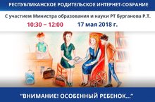 Заседание Республиканского родительского интернет собрания на тему "Внимание! ОСОБЕННЫЙ РЕБЕНОК..." Вопросы принимаются по адресу: roditelirt@mail.ru или через форму на сайте https://goo.gl/forms/v5jHQ5dC4zmwP2ty2