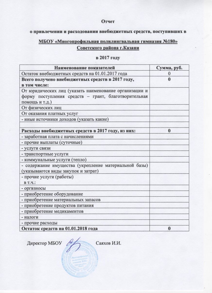 Отчет о привлечении и расходовании внебюджетных средств за 2017 год