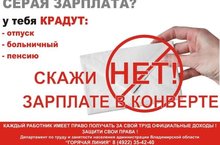 Информация от Прокуратуры г.Казани. Буклеты социально-правовой рекламы, разъясняющие негативные последствия получения неофициальной заработной платы