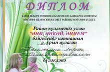 В целях приобщения учащихся к культурным ценностям татарского народа, развития национального самосознания, выявления талантливых детей, мотивация родителей и детей на совместную творческую деятельность, прошел районный конкурс в ЦДТ п. Дербышки "Әни,әнкәй, әнием...", в котором приняла участие педагог нашего детского сада Касаткина Лейсан Магарифовна, и заняла заслуженное II место. Лейсан Магарифовна, поздравляем Вас с победой, желаем творческих успехов и дальнейших побед!!!