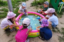 Как здорово летом играть на улице, радоваться теплому солнышку, любоваться разноцветными цветами, зеленой травкой. Различные игры можно организовать летом на прогулке – подвижные, спортивные, игры с песком, но в жаркий летний день нельзя обойтись без игр с водой. Игры с водой – это эффективный способ самотерапии. Вода способна «заземлять» отрицательную энергию. Она способствует развитию эмоциональной сферы малышей. Игры с водой всегда доступны и могут не просто заинтересовать, развлечь, поднять эмоциональный настрой ребенка, но служить средством познания окружающего мира. Вода способствует развитию мелкой моторики рук, координации движений. Детям очень нравятся игры с водой и они с удовольствием в них играют.