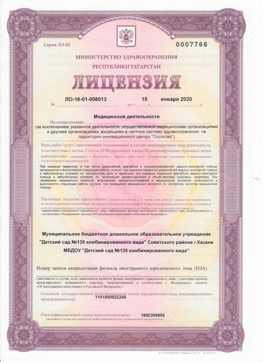 Муниципальное бюджетное дошкольное образовательное учреждение «Детский сад №135 комбинированного вида» Советского района г.Казани
