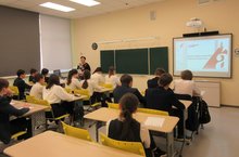 Урок проводился в актовом зале гимназии с учениками 8-х классов в количестве 122 человек. Во вводной части урока было подчеркнуто значение таких гуманных и уважаемых профессий, как врачи, спасатели МЧС и пожарные. В процессе урока вниманию учащихся была представлена информация об истории возникновения, развитии и современном состоянии поисково-спасательной и парашютно-десантной службы авиации ВС РФ, решаемых ею задачах, силах и средствах, привлекаемых для спасения экипажей и пассажиров воздушных судов, терпящих бедствие...