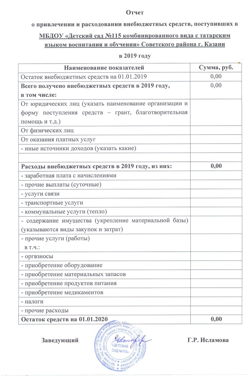 Отчет о привлечении и расходовании внебюджетных средств за 2019 год