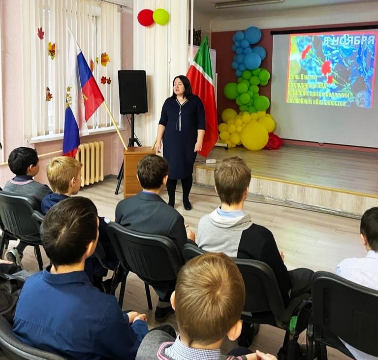Сегодня в нашей школе в рамках акции «На страже Родины моей» состоялась встреча Старшего инспектора ПДН ОП 14 "Дербышки" Управления МВД России по г. Казани майора полиции Мингазовой Ляйсян Минуллаевны с учащимися и педагогами школы. В ходе встречи ребята узнали о сложной и рискованной работе сотрудников внутренних дел.