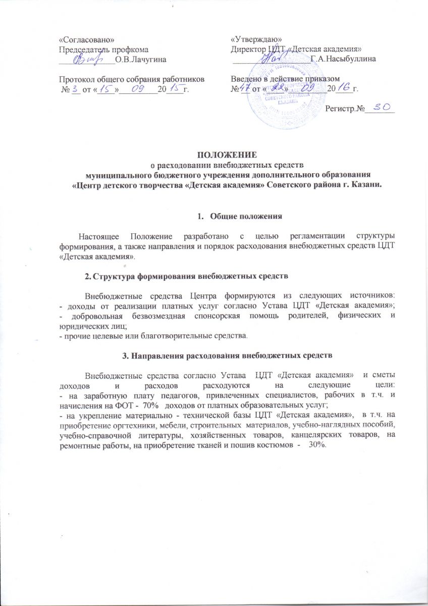 39. Положение о расходовании внебюджетных средств от дополнительной платной деятельности