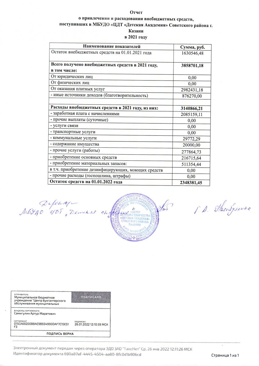 Отчёт о привлечении и расходовании внебюджетных средств за 2021 год
