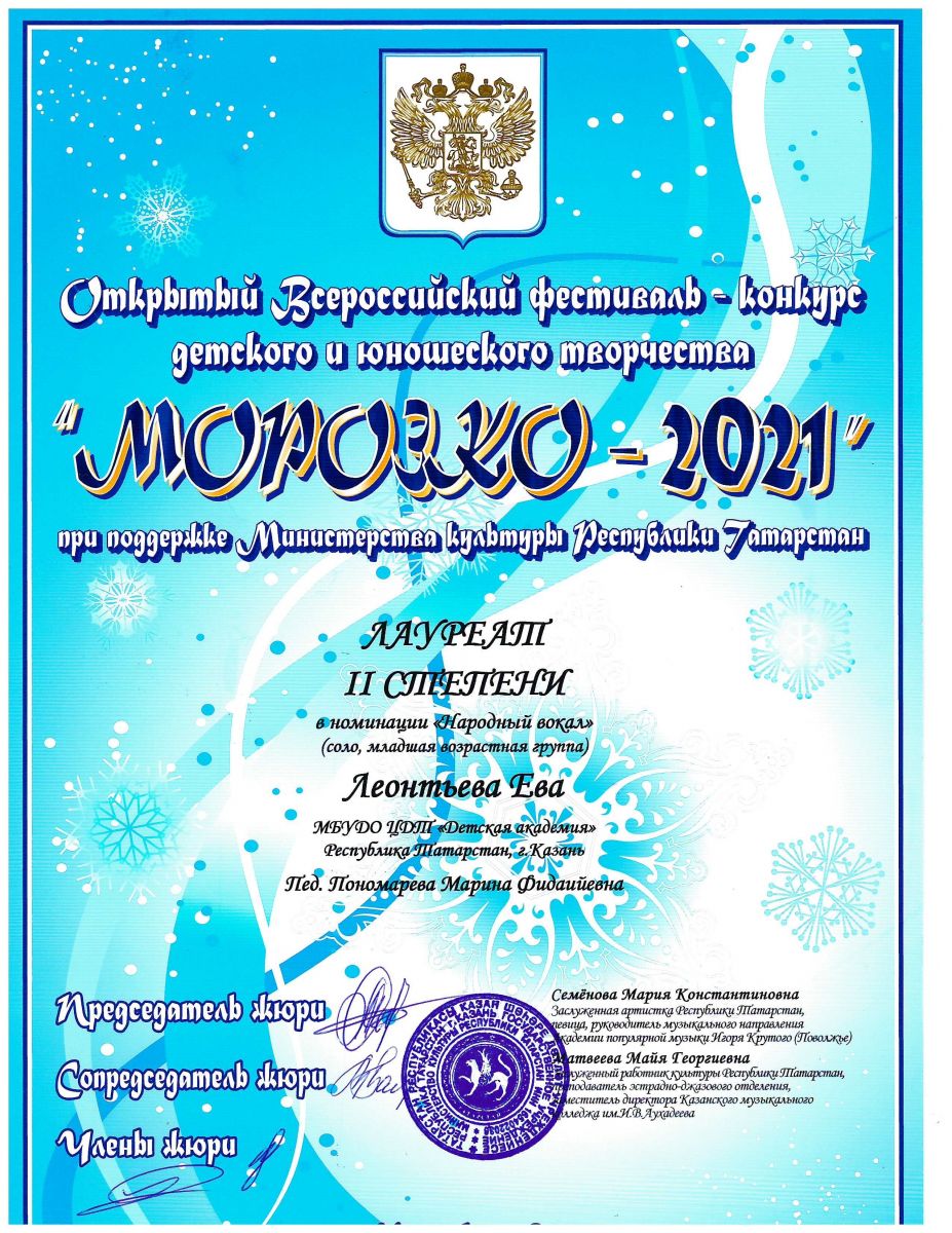 Опубликовано: 03.03.2021Обучающиеся эстрадной студии приняли участие в Открытом Всероссийском фестивале- конкурсе детского и юношеского творчества « Морозко – 2021». И стали Лауреатами 2 степени. Поздравляем наших вокалистов и педагога с победой!