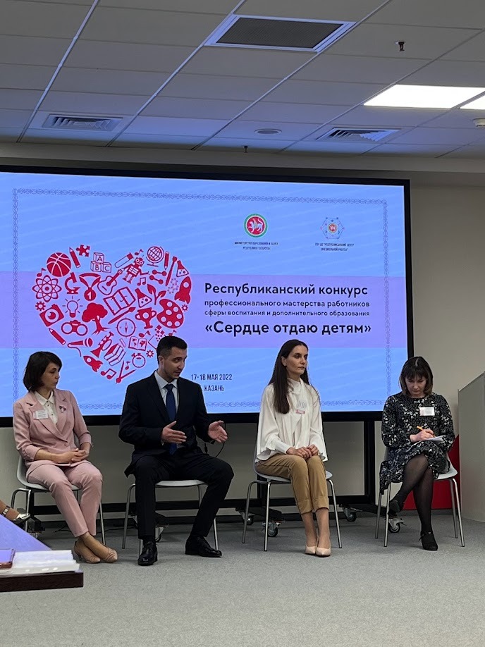 Опубликовано: 19.05.2022В целях повышения значимости и престижа профессии педагогического работника сферы воспитания и дополнительного образования детей, создания эффективных условий, обеспечивающих непрерывное профессиональное развитие и творческий рост педагогов дополнительного образования с 17 по 18 мая 2022 года на базе Технопарка в сфере высоких технологий «ИТ-парк» прошел финал республиканского конкурса профессионального мастерства работников сферы воспитания и дополнительного образования детей «Сердце отдаю детям».Организаторами мероприятия выступили: Министерство образования и науки Республики Татарстан и ГБОУДО «Республиканский центр внешкольной работы».