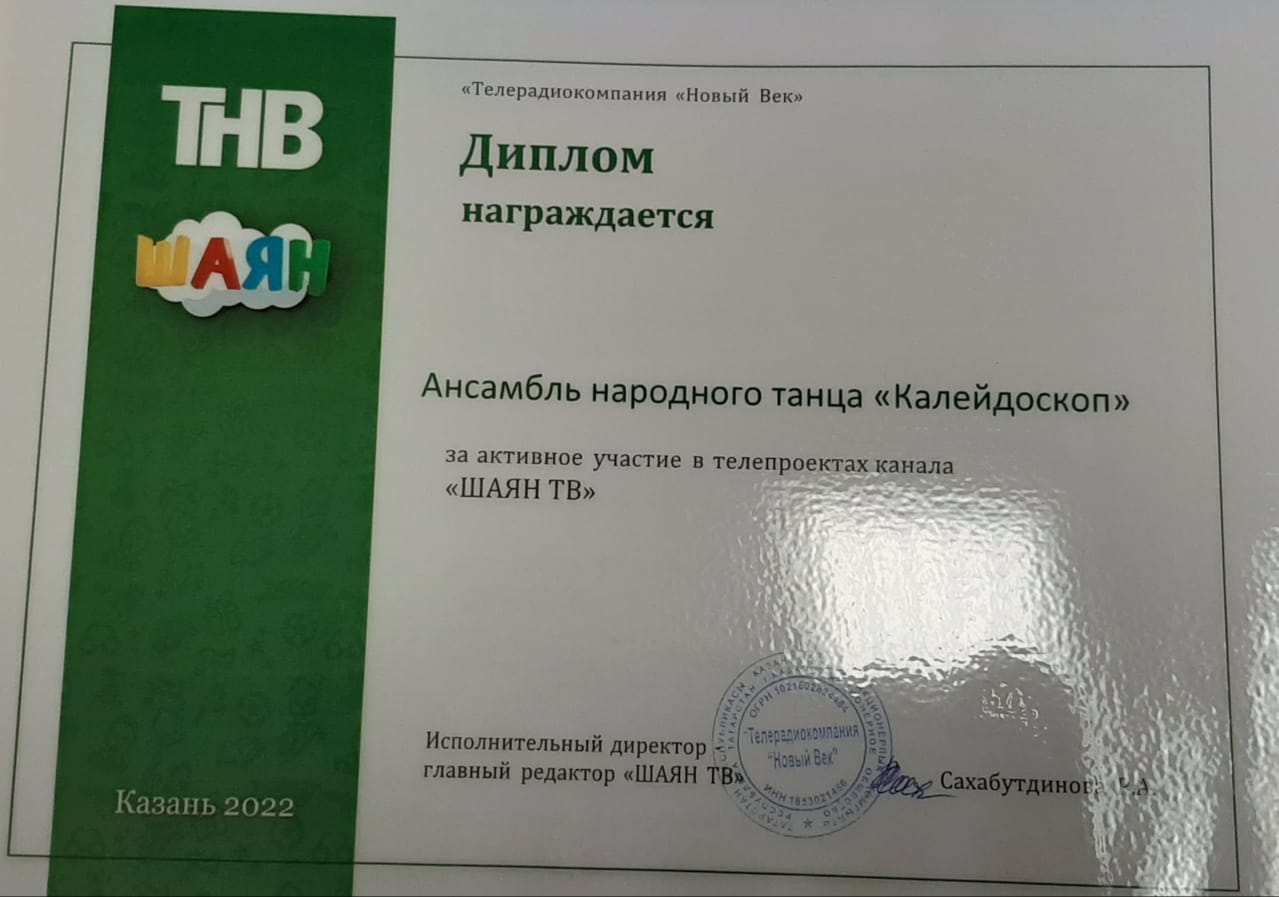 Опубликовано: 28.11.202228.11 ансамбль народного танца " Калейдоскоп" принял участие в концертной программе " Шаян Тв" на церемонии награждения победителей исследовательской конференции школьников и чтений на языках народов РФ"