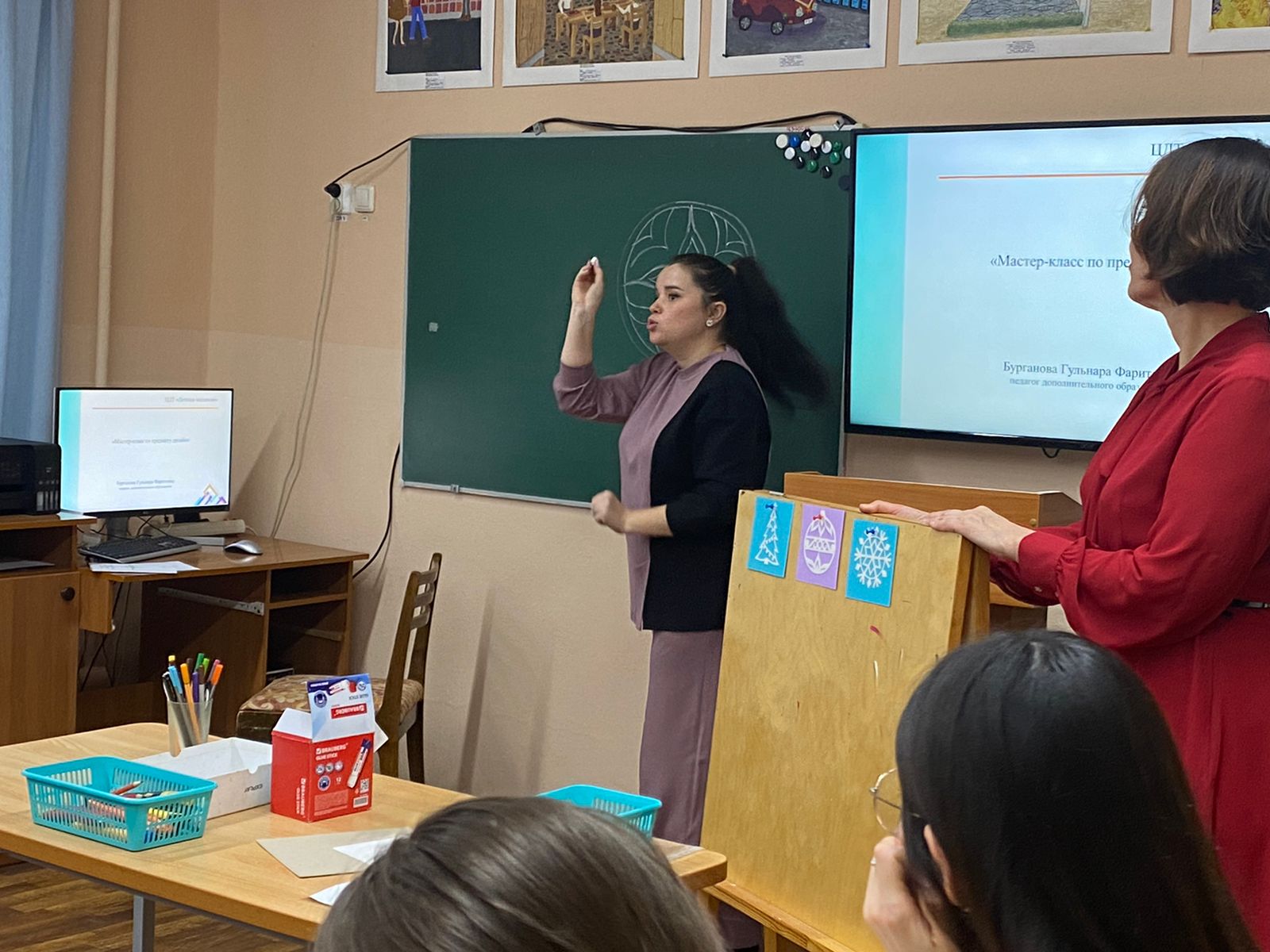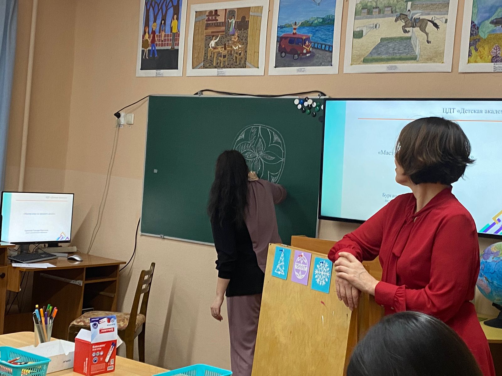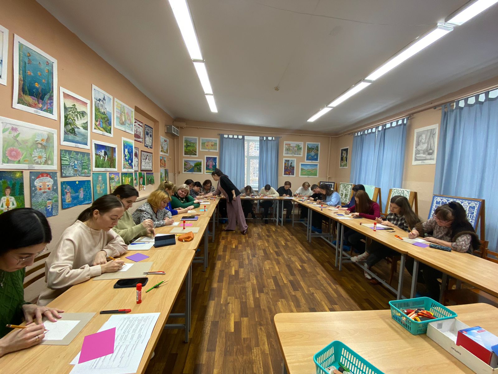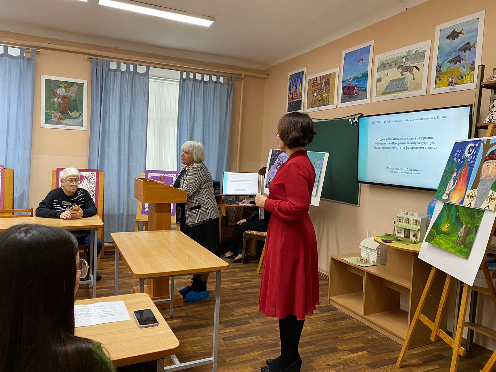 Опубликовано: 29.11.202229 ноября на базе Центра детского творчества «Детская академия» Советского района состоялся городской семинар для работников дополнительного образования по теме «Обновление содержания и методов обучения по «Изобразительному искусству». Педагоги отдела художественной школы поделились опытом реализации комплексной программы «Изобразительное искусство»; продемонстрировали работы обучающихся, выполненные в рамках проектной деятельности; поделились опытом участия в Федеральных ведомственных конкурсах по обновлению содержания образования. Также для слушателей семинара был организован мастер-класс по предмету дизайн, где каждый слушатель выполнил новогоднюю работу в техники «прорезание». На круглом столе при подведении итогов был проведен интерактивный разрез, в рамках которого каждый участник семинара смог стать активным участником завершающего этапа городского семинара.