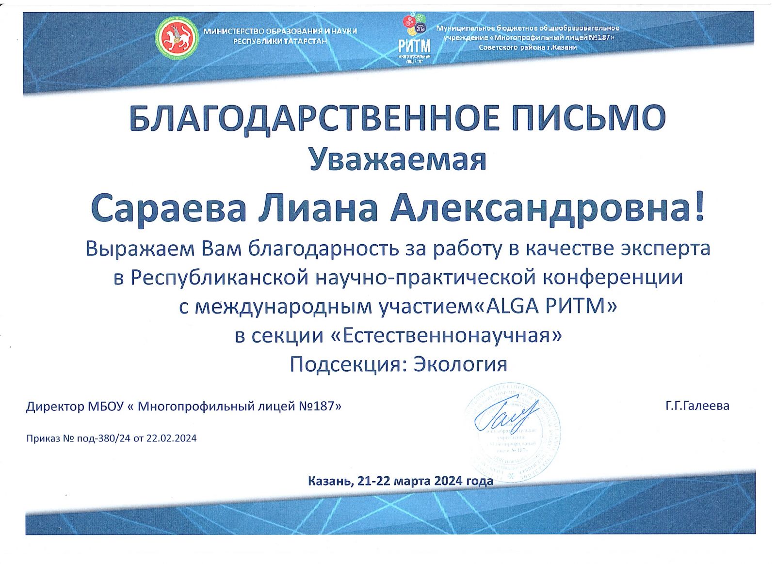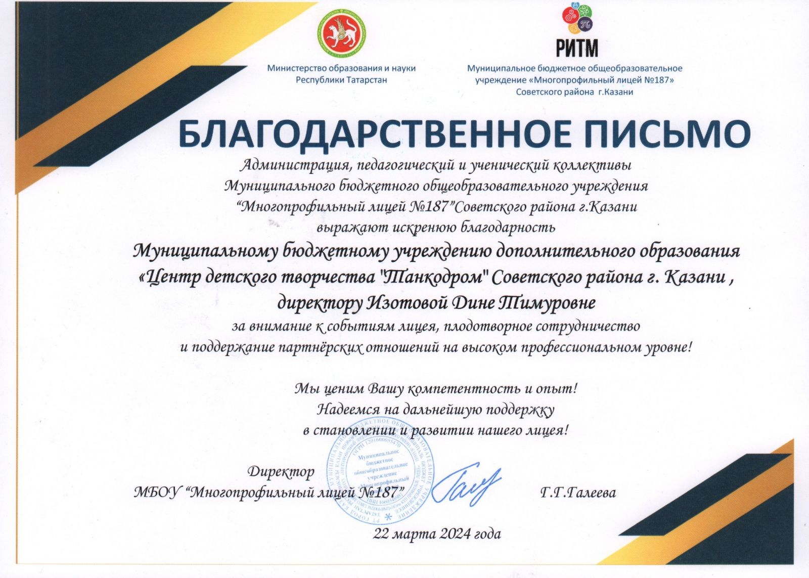 Благодарственное письмо.