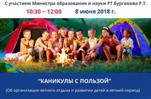 8 июня 2018 года в 10.30 состоится VII заседание Республиканского родительского интернет-собрания. Тема заседания – «Каникулы с пользой (Об организации отдыха и развитии детей в летний период)». Модератором собрания выступит Заместитель Премьер-министра Республики Татарстан – Министр образования Республики Татарстан Рафис Тимерханович Бурганов.
