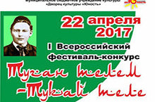 22 апреля 2017 года во Дворце Культуры «Юность» состоится Всероссийский фестиваль-конкурс «Туган телем – Тукай теле», посвященный 131 – летию великого татарского поэта Габдуллы Тукая.