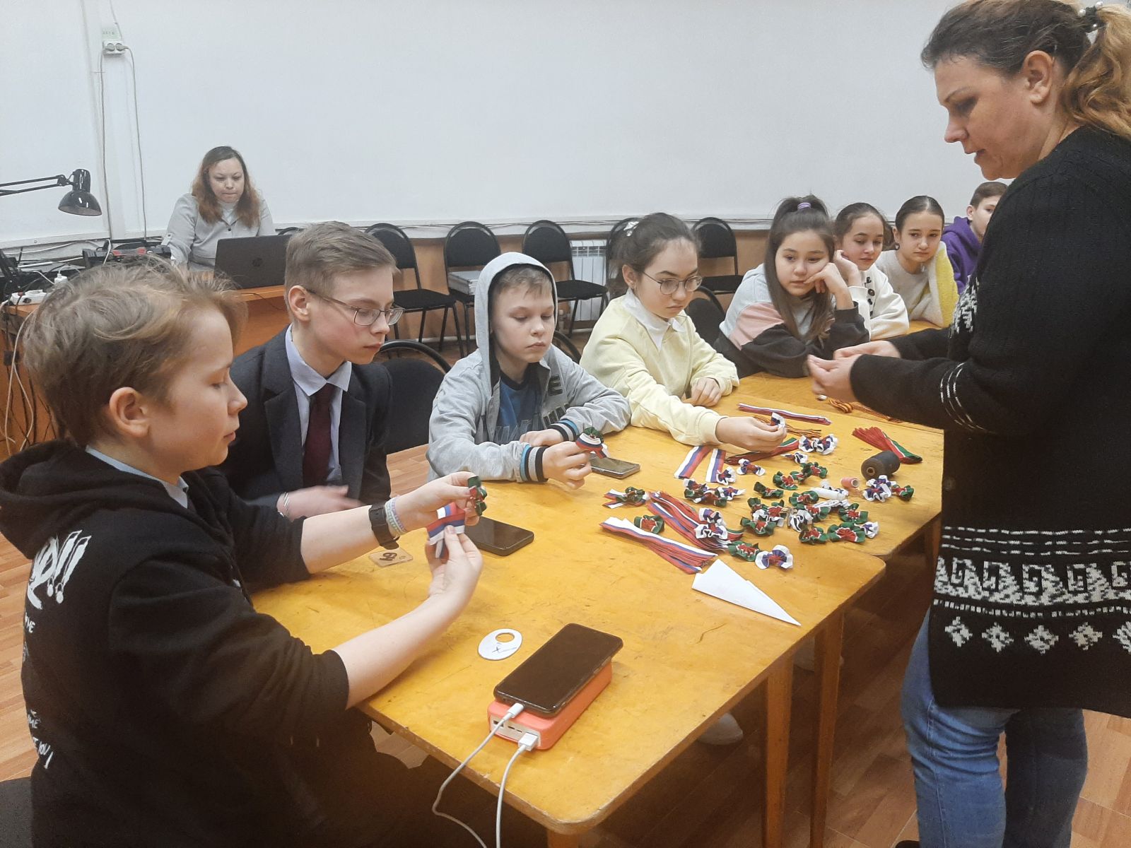 10 февраля в ЦДТ "Танкодром" для учащихся объединения "Музыкальный серпантин" был проведен мастер-класс на тему "Патриотизм начинается с детства". С ребятами беседовали на тему патриотизма, был просмотрен короткометражный фильм о Родине "Просковья", и были сделаны своими руками значки и георгиевские ленты по образцу.