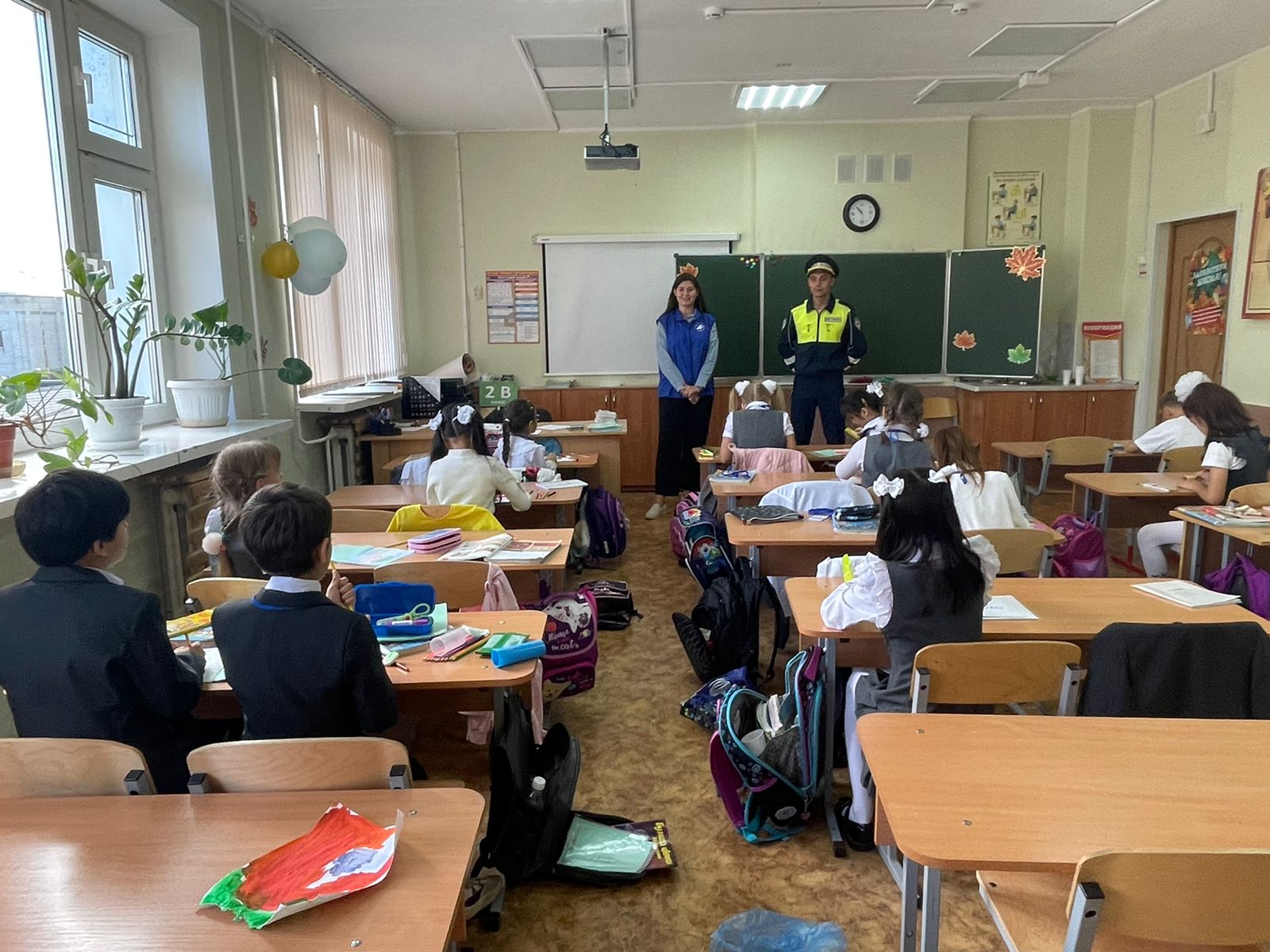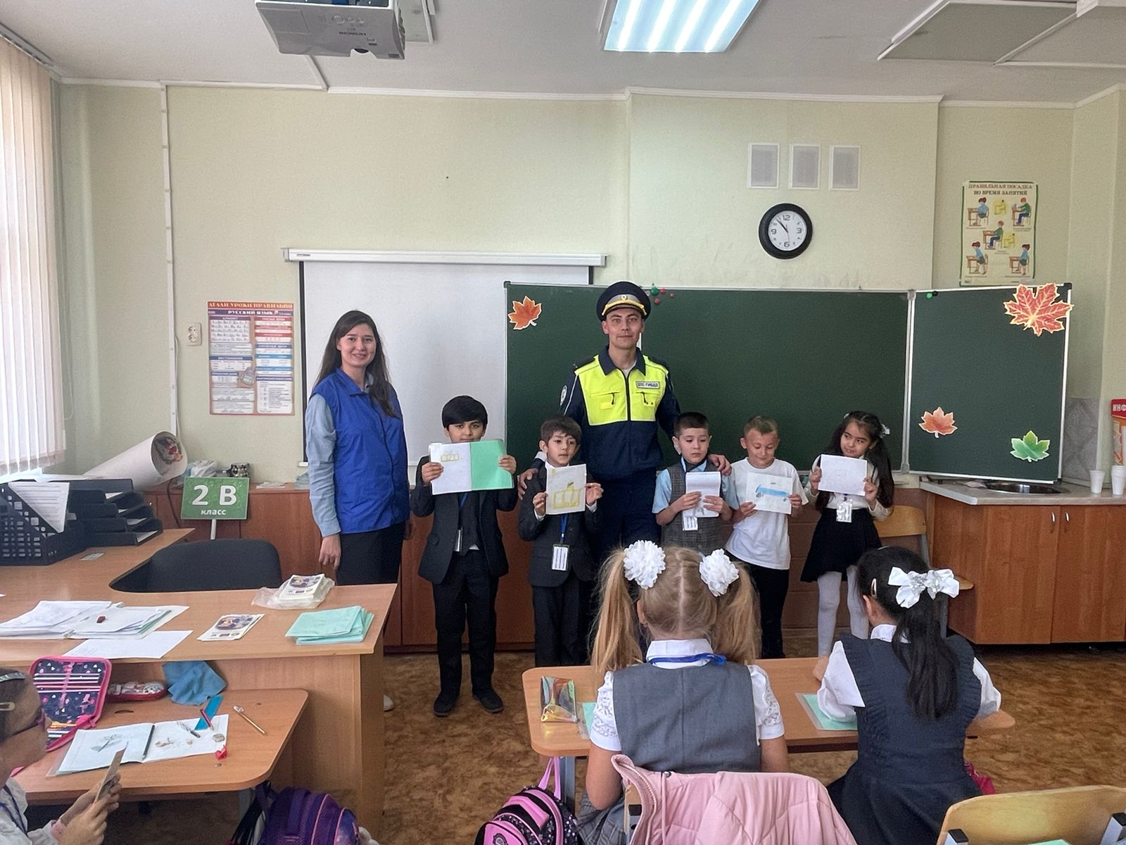 Сегодня 6 сентября 2022г. в школе № 161 инспектор ДПС 1 взвода 1 роты 1 батальона Полка ДПС ГИБДД УМВД РФ по г. Казани Школьников В.Н. провел лекцию для учеников начальной школы в рамках недели безопасности. Также инспектор поздравил участников городского конкурса "Внимание, дорога!" и вручил методический материал для занятий со школьным отрядом ЮИД.