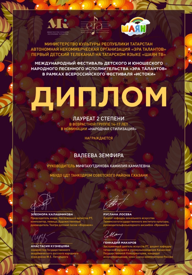 Руководитель - педагог по вокалу Булатова Лира Эмилевна.