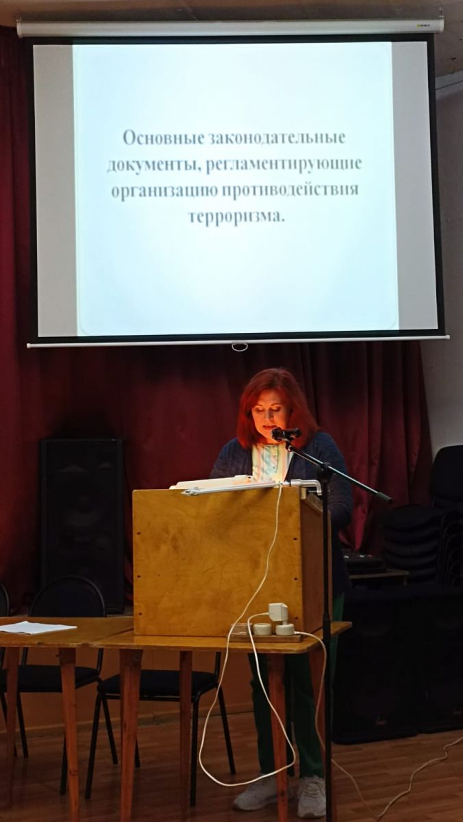 В Центре детского творчества «Танкодром» прошла учеба на тему «Антитеррористическая защищенность в Центре детского творчества. Обучение и теория». Заместитель директора по АХЧ Юрченко Ю.С. рассказала об основных положениях противодействия терроризму. Перечислила мероприятия, направленные на снижение рисков терактов и защиту от опасностей.