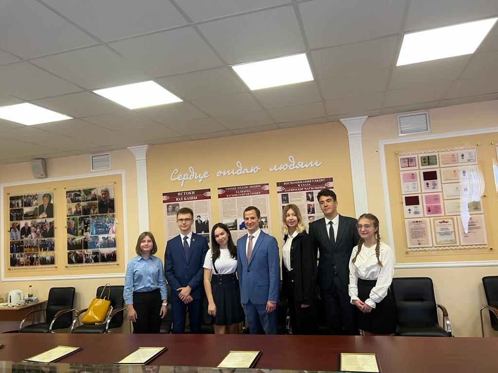 10 июня 2022г. в канун государственного праздника Дня России в МАОУ "Лицей №121 имени Героя Советского Союза С. А. Ахтямова" Советского района г. Казани состоялась встреча Главы администрации Советского района Фатхутдинова Романа Рамизовича с победителями и призерами заключительного этапа Всероссийской олимпиады школьников по экологии, русскому, китайскому языках и Мировой художественной культуре.