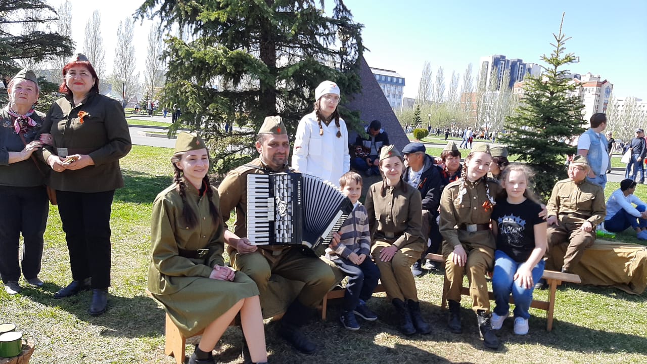 9 мая 2022 г. в парке Победы г.Казани коллектив педагогов "ЦДТ "Танкодром" встречали гостей праздника Дня Победы на тематической площадке "Солдатский привал".