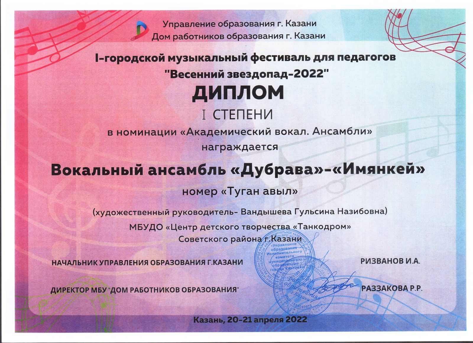 Поздравляем победителей XXX Международного фестиваля-конкурса детского и юношеского творчества «Звезды столицы»-лауреатов 1 степени- инструментальный ансамбль "Дастан" ЦДТ "Танкодром", руководитель Шарафутдинов Рамиль Рафикович.