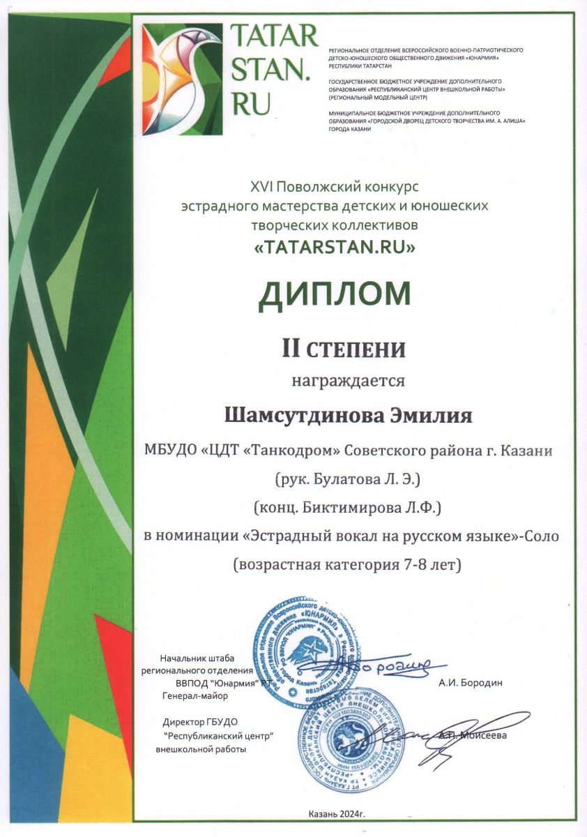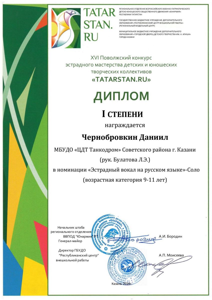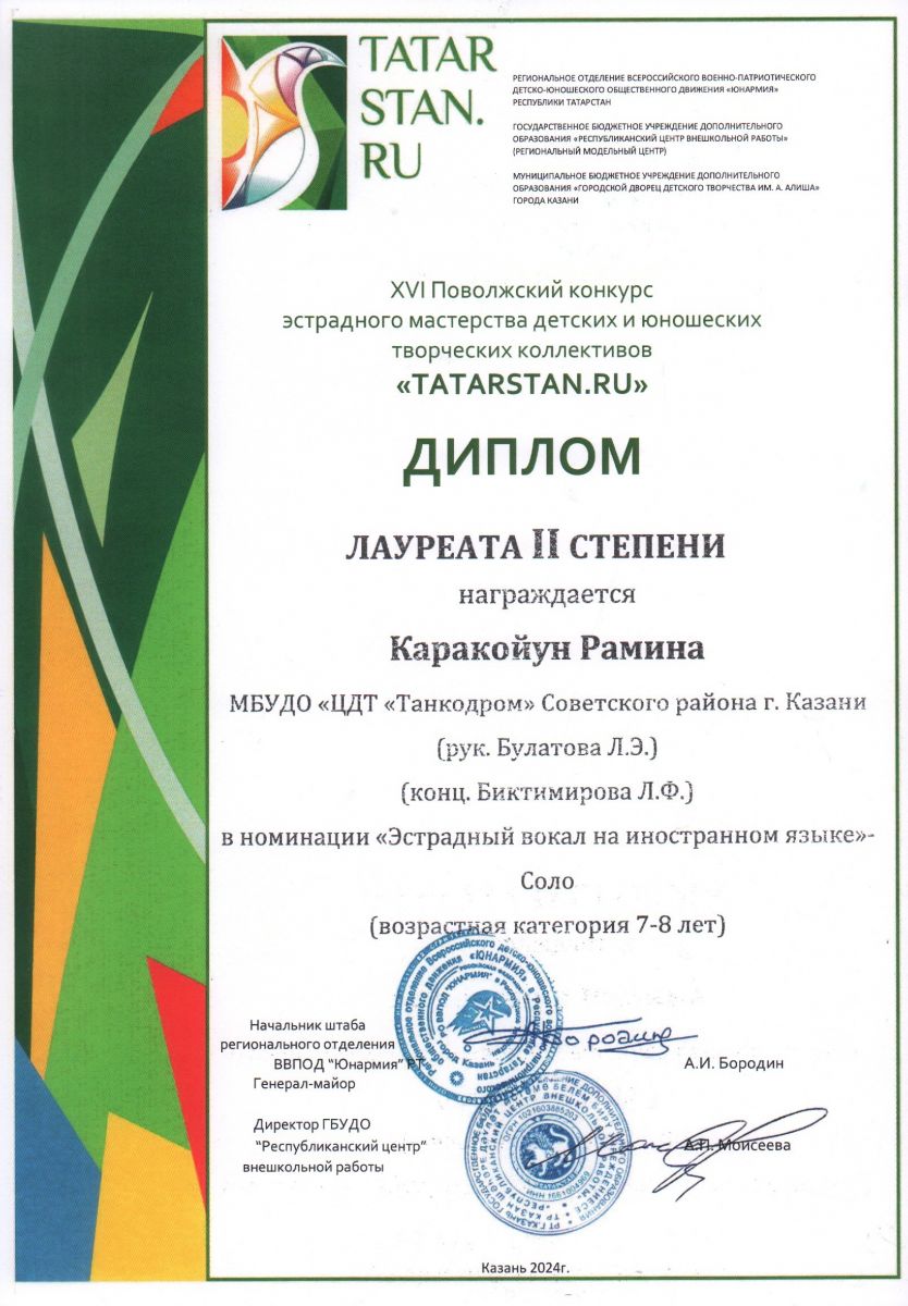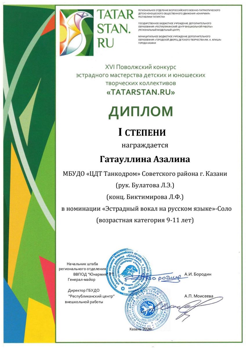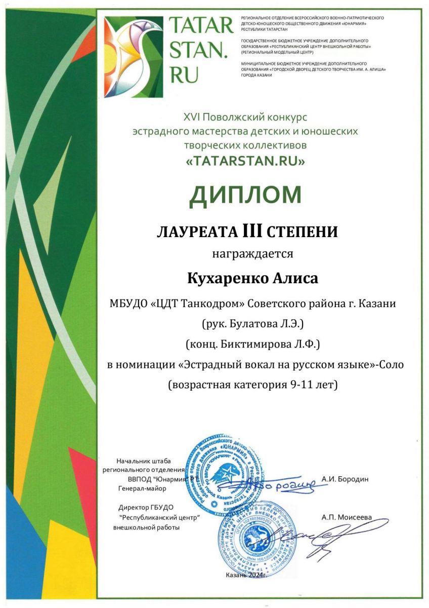 Поздравляем лауреатов и дипломантов XVI Поволжского конкурса эстрадного мастерства детских и юношеских творческих коллективов "TATARSTAN.RU" учащихся вокального объединения "Беллиссимо" (рук. Булатова Л.Э.)!