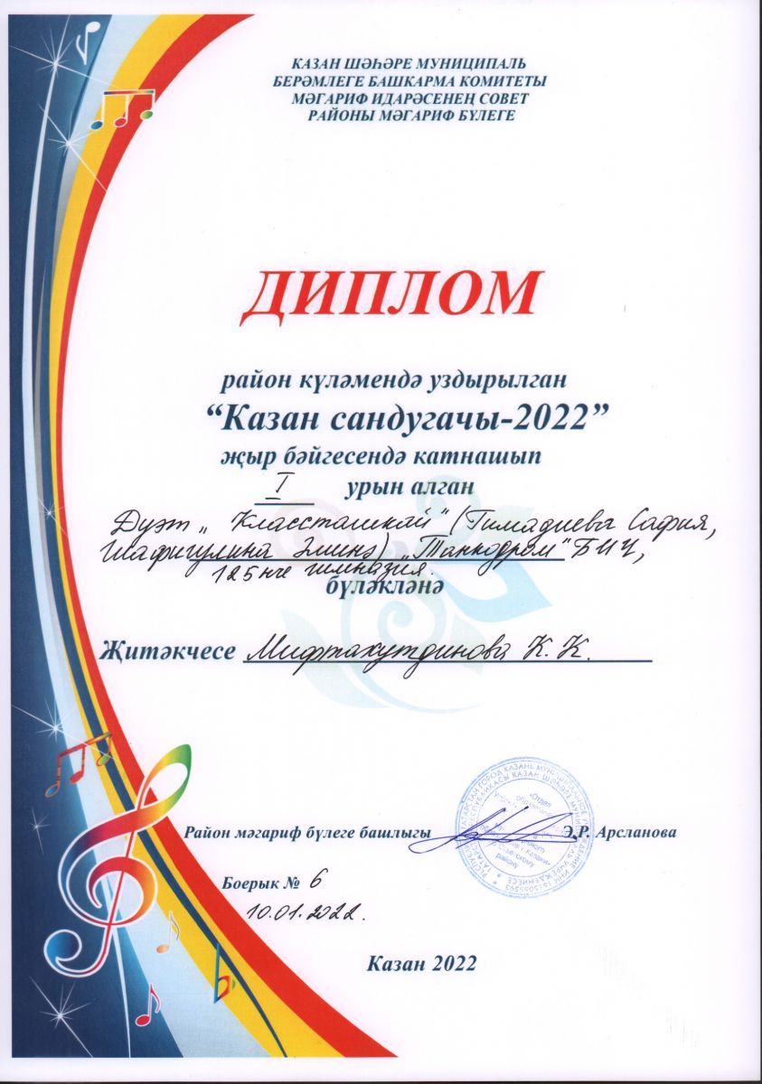 Поздравляем победителей районного этапа городского конкурса "Казан сандугачы-2022"!