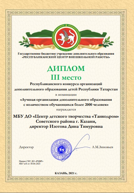 | Короткое название: | МБУДО "ЦДТ Танкодром" г. Казани |