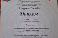 В марте 2021 года в г. Казань состоялся VIII-ом Международный конкурс вокалистов «Сандугач-Соловей», в конкурсе принял участие вокальный ансамбль "Дубрава - Имянкяй", руководитель Заслуженный работник культуры РТ Вандышева Гульсина Назибовна.