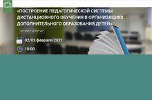 Со 2 по 3 февраля 2021 года состоится Всероссийский онлайн-семинар: «ПОСТРОЕНИЕ ПЕДАГОГИЧЕСКОЙ СИСТЕМЫ ДИСТАНЦИОННОГО ОБУЧЕНИЯ В ОРГАНИЗАЦИЯХ ДОПОЛНИТЕЛЬНОГО ОБРАЗОВАНИЯ ДЕТЕЙ».