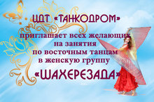 Открыт набор в группу восточного танца "Шахерезада" (танец живота для начинающих), возраст от 18 до 60 лет (на платной основе).