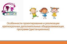 17 августа 2020 г. в центре прошел семинар по теме :"Особенности проектирования и реализации краткосрочных дополнительных общеобразовательных программ (дистанционных)". На семинаре так же рассматривались вопросы разработки адаптированных дополнительных общеобразовательных программ.