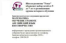 Школа развития "Умка" ждет своих учеников 20.08.2020