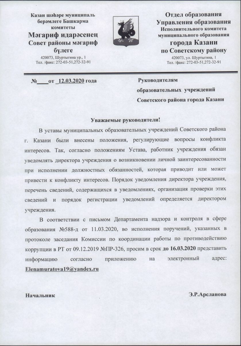 Письмо-распоряжение " О Конфликте интересов в образовательных учреждениях"