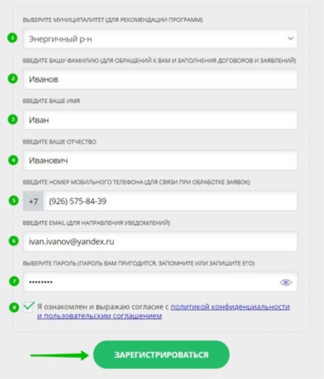 - городской округ или муниципальный район, где проживает родитель (выбрать нужный из выпадающего списка);
