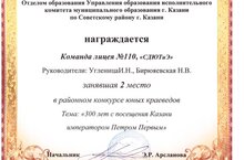 Районный конкурс юных краеведов среди учащихся Советского района г. Казани "300 лет с посещения Казани императором Петром Первым" 06.05.2022